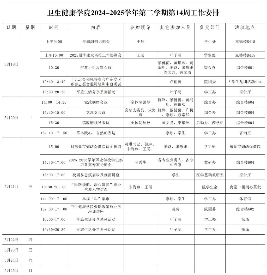 乐天使2024-2025学年第二学期第14周工作安排