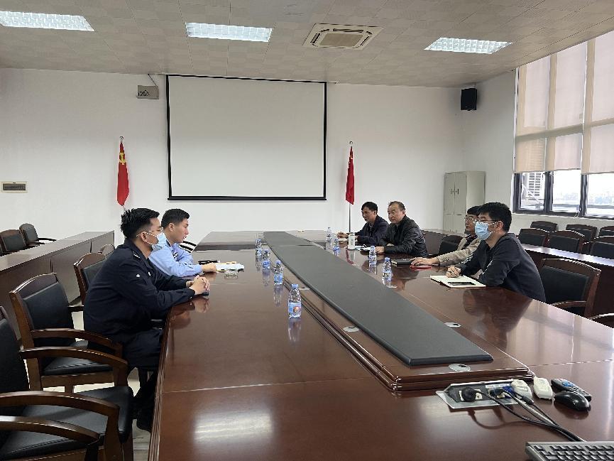 4月19日,道滘镇公安分局文保大队周亮教导员等一行2人到公司检查维稳安保工作。公司党总支书记、经理雷亚民,党总支副书记王辰、副经理张晓阳及后勤安全办公室负责人陪同座谈。