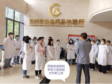 4月3日上午,在乐天使药学专业组林竹贞、李名深两位老师的带领下,2020级药学本科班的33名同学来到东莞市食品药品检验所参观学习。