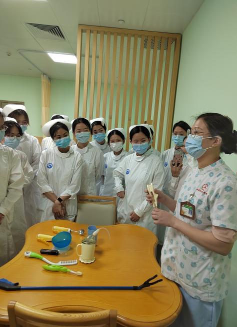 在东莞市洪梅医院陈笑兴护长及带教老师的带领下,员工们来到养老院,学习失智老年人记忆照护护理、功能康复护理及老年人跌倒的预防、管理等知识。通过带教老师的详尽讲解、演示和亲身操作,同学们对于老年临床护理工作有了更深入的认识。