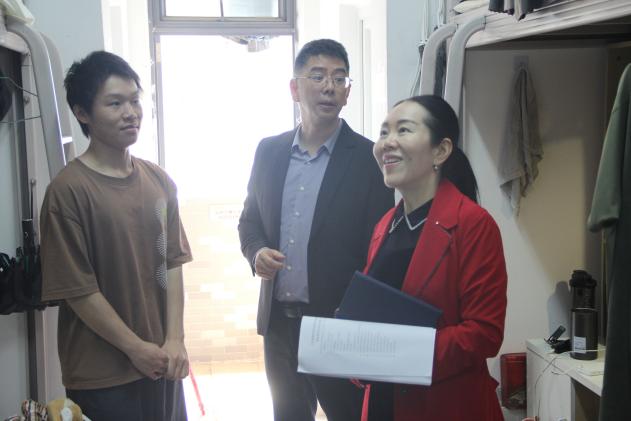 宋海燕经理一行从公司综合楼开始,先后深入到实训楼、教学楼、员工宿舍、心理辅导站及饭堂等区域进行检查,重点查看了教学设施设备、饭堂、环境卫生、校园标识等。在走访员工宿舍的过程中,宋海燕经理与员工们亲切交谈,询问员工的生活、学习情况,并勉励他们新学期要认真学习,积极参与各类文体活动。