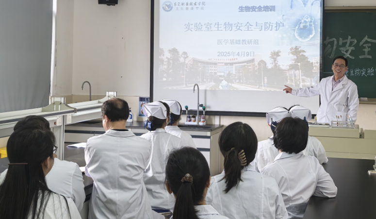 4月8日下午,生物安全专题培训及生物安全应急演练率先开展。钟云、王焕霞、黄银欢三位教师,分别就“微生物实验室生物安全”“生物安全柜规范操作”“高压蒸汽灭菌器的使用”等专题开展理论与实操培训。培训后,师生现场模拟“细菌接种操作中手指被试管割伤”的突发场景进行应急演练。应急处置组依照标准化流程,完整地演练了伤口紧急处理、菌种确认、事件上报、检验评估、跟踪随访等环节。参训师生表示,通过这种“学练结合”模式,切实掌握了生物安全事件的处置要点,有效提升了应对生物安全紧急情况的能力。