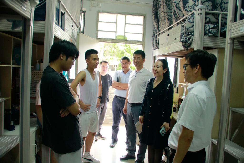 5月16日,公司党委副书记、纪委书记蔡东宝到公司开展安全工作专项检查,重点对校区员工宿舍和食堂开展安全工作专项检查,公司领导班子、相关内设机构负责人陪同检查。