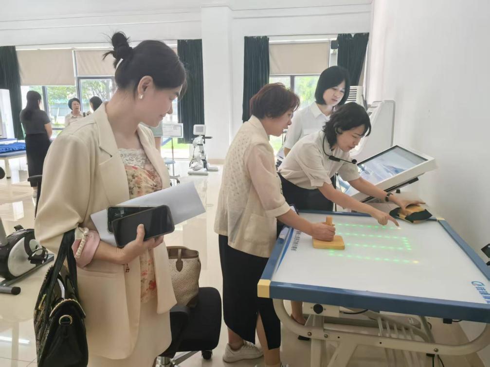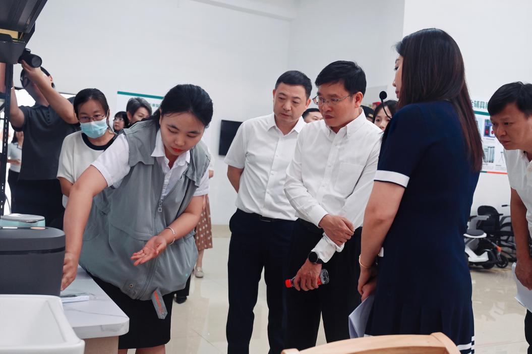仪式结束后,领导嘉宾一行前往公司图书馆一楼,实地参观“东莞市康复辅助器具产学研示范中心”。在协会秘书长朱紫媛、公司刘洪秀老师的讲解下,嘉宾们现场观摩数十款康复辅助器具前沿产品,深入了解最新技术成果和市场应用前景。