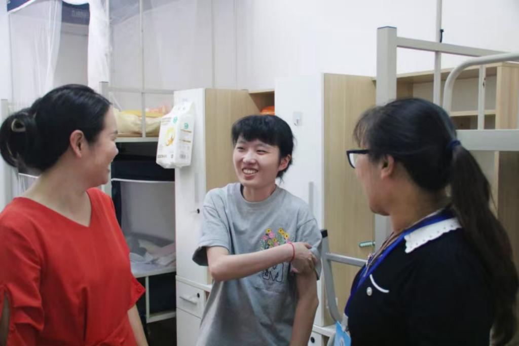 下午,宋海燕经理、王辰副书记一行走访新生临时宿舍,与新生和家长们亲切交谈,并叮嘱同学们要严格做好防蚊灭蚊措施及军训防晒等准备,以良好的精神面貌迎接军训。